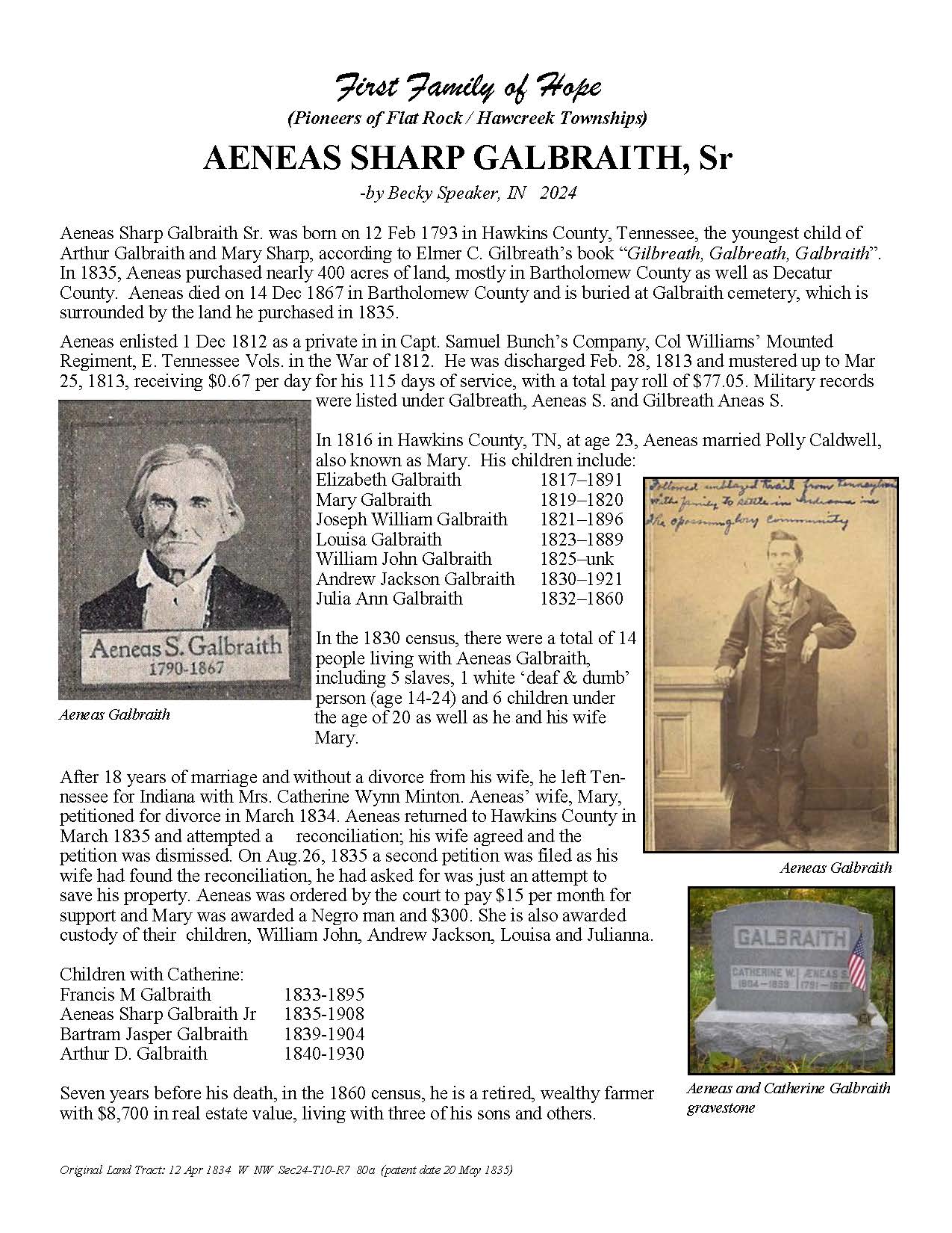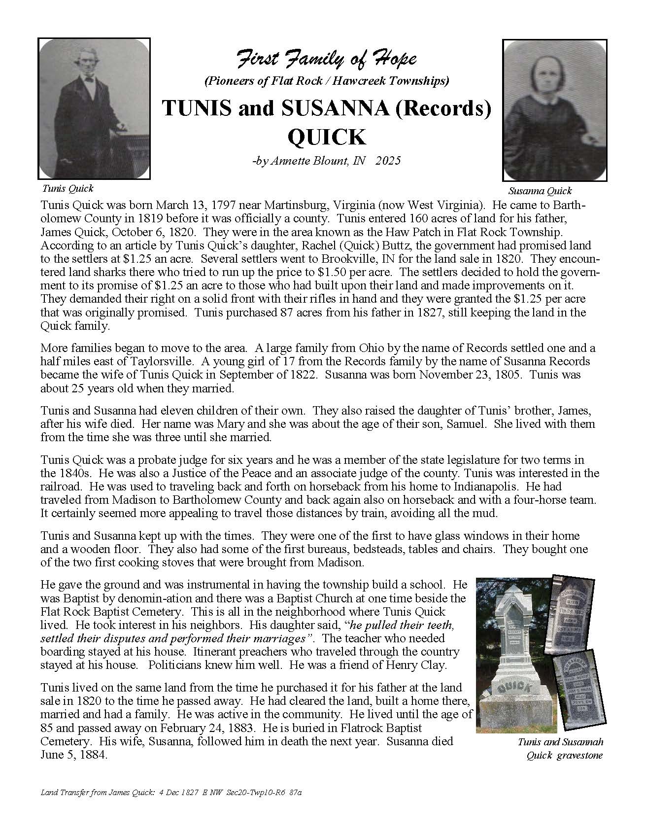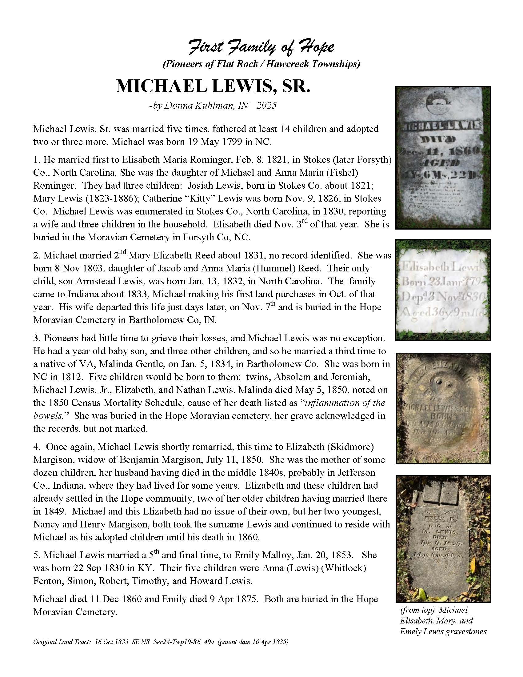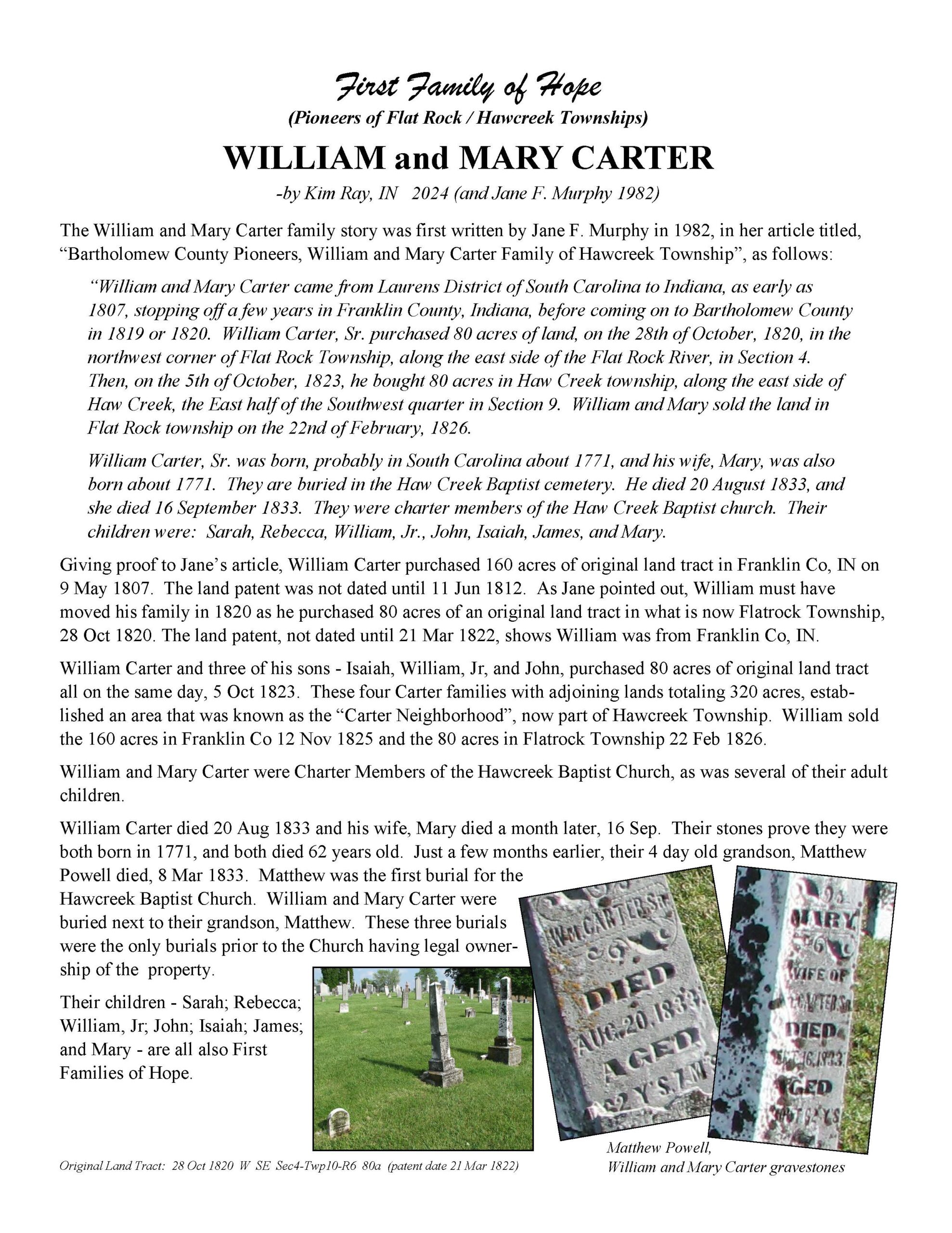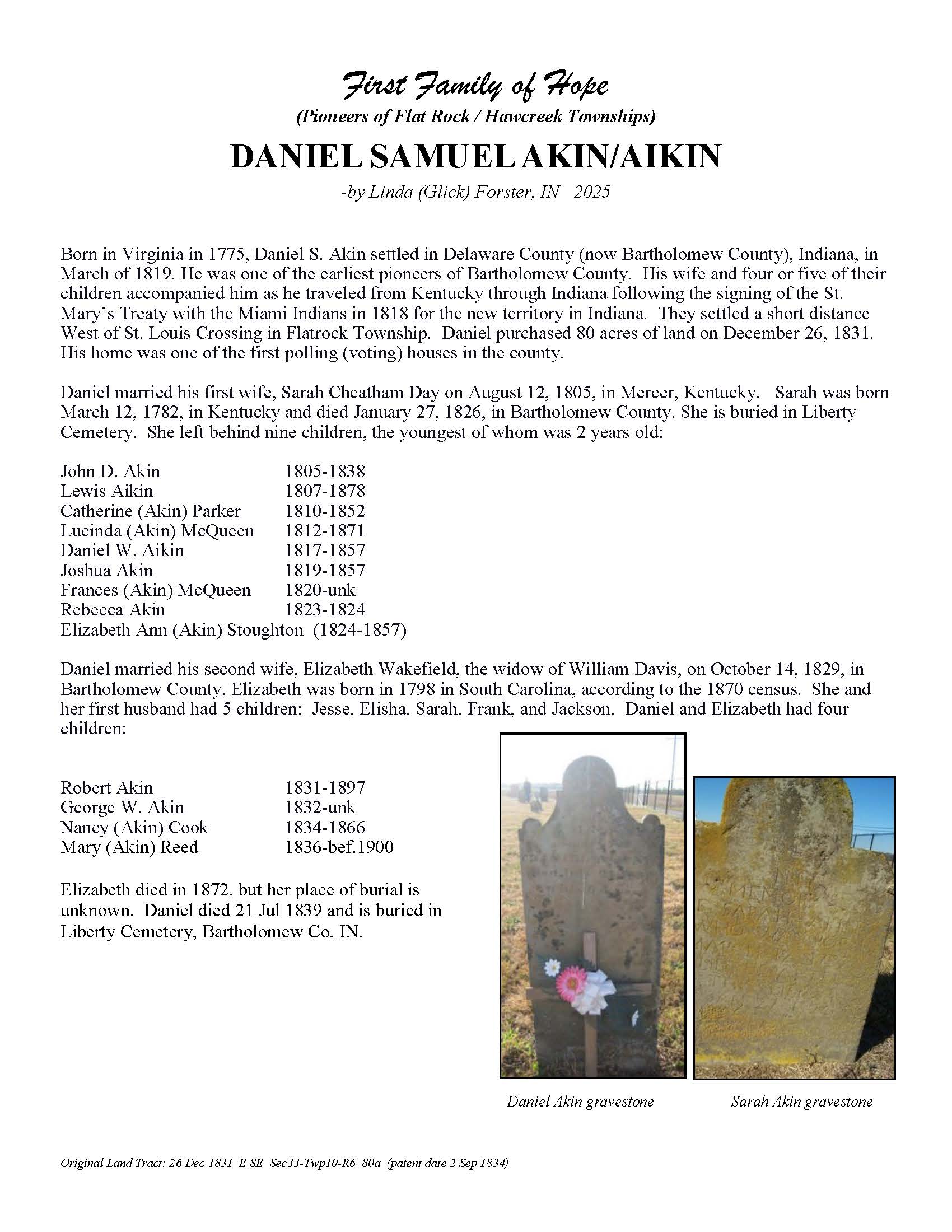 The Bartholomew County Genealogical Society created the First Families of Hope project to research, recognize, and honor 50 different surnames of the pioneers who were in Hawcreek or Flat Rock Township by 1840, as a gift to the Yellow Trail Museum in recognition of their 50th Anniversary – September 2025.