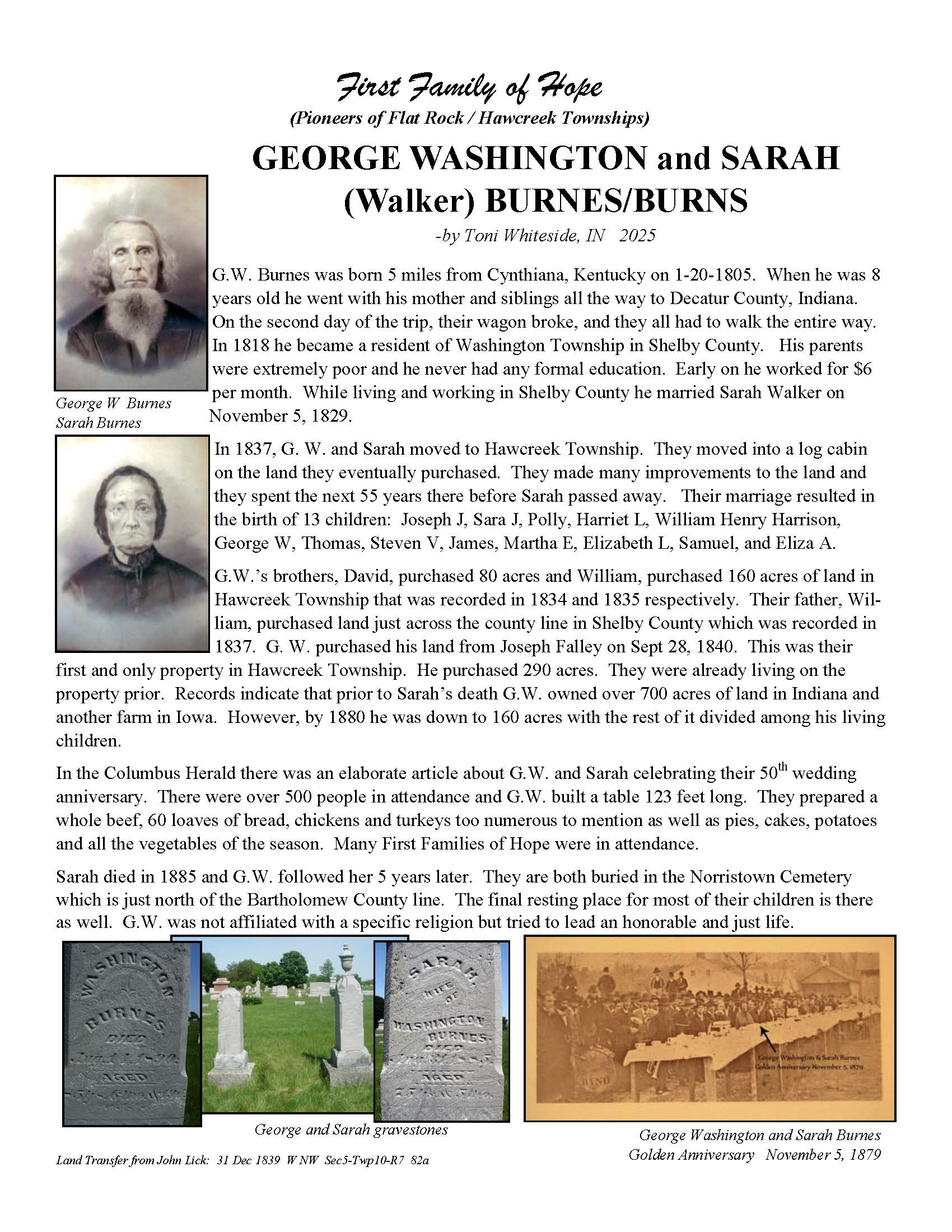 Burnes, George Washington and Sarah (Walker)