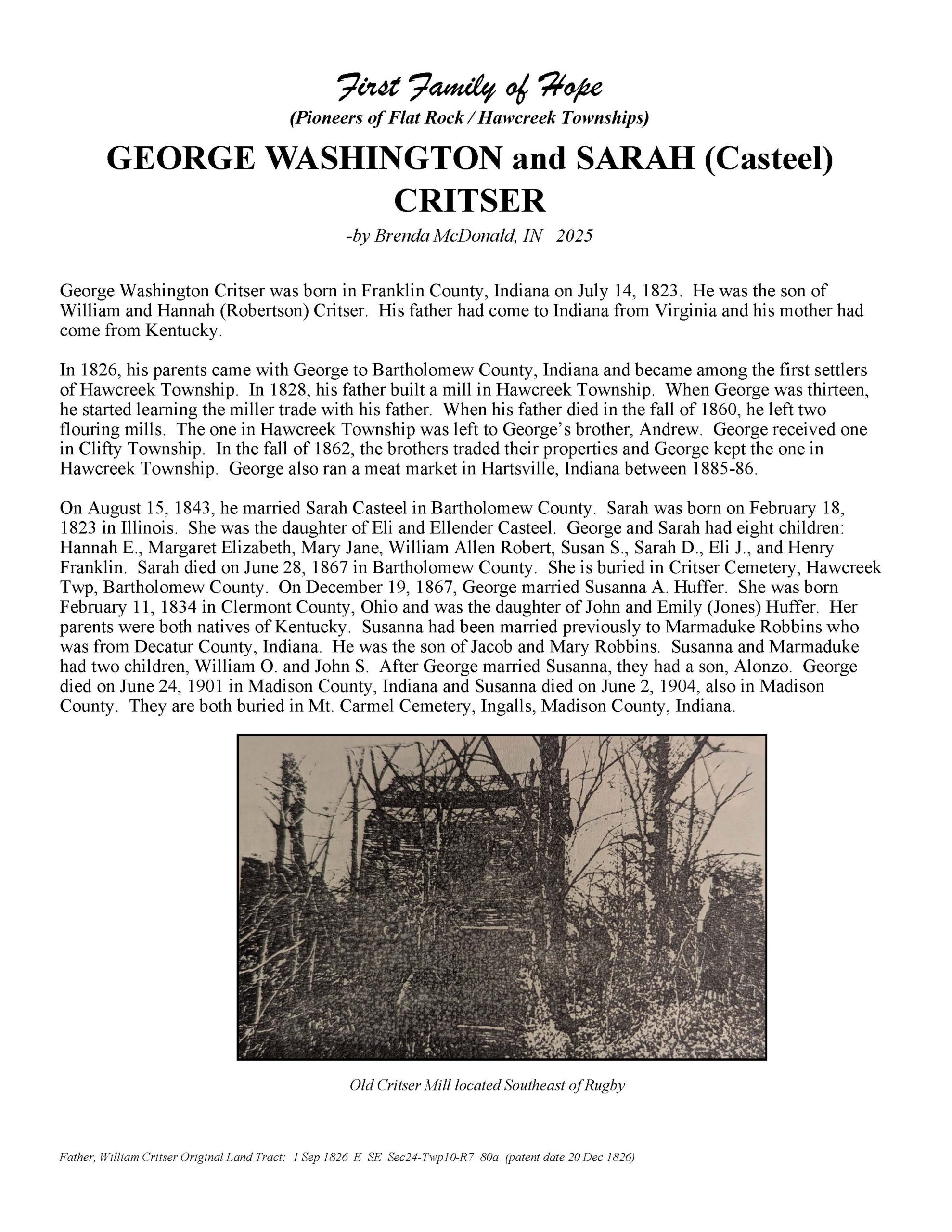 Critser, George Washington and Sarah (Casteel)