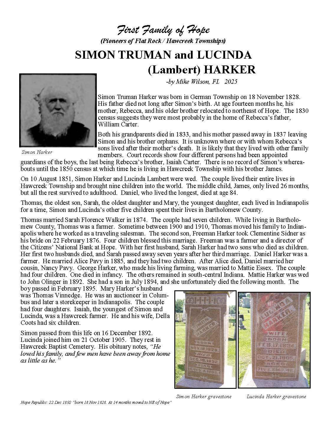 Harker, Simon Truman and Lucinda (Lambert)