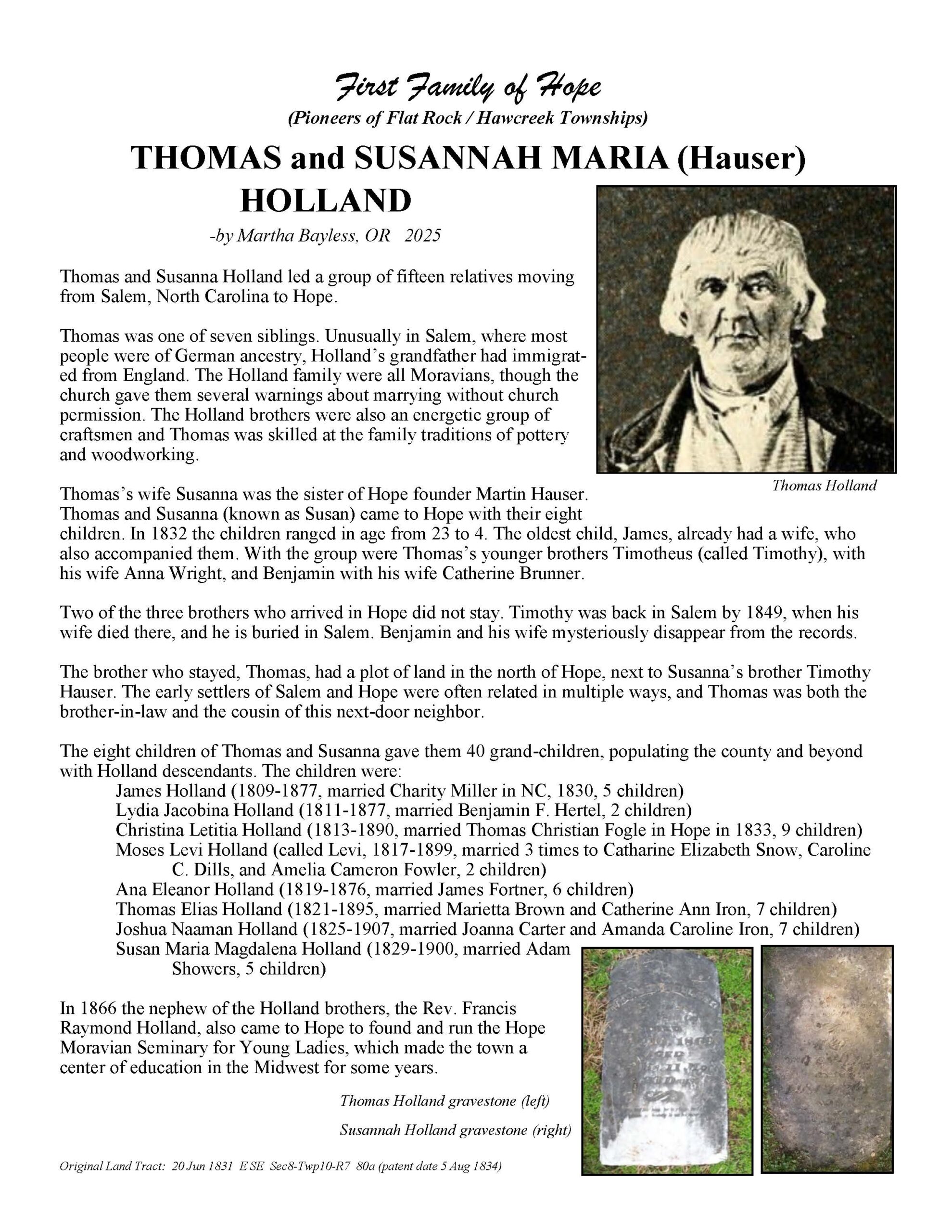 Holland, Thomas and Susannah Maria (Hauser)