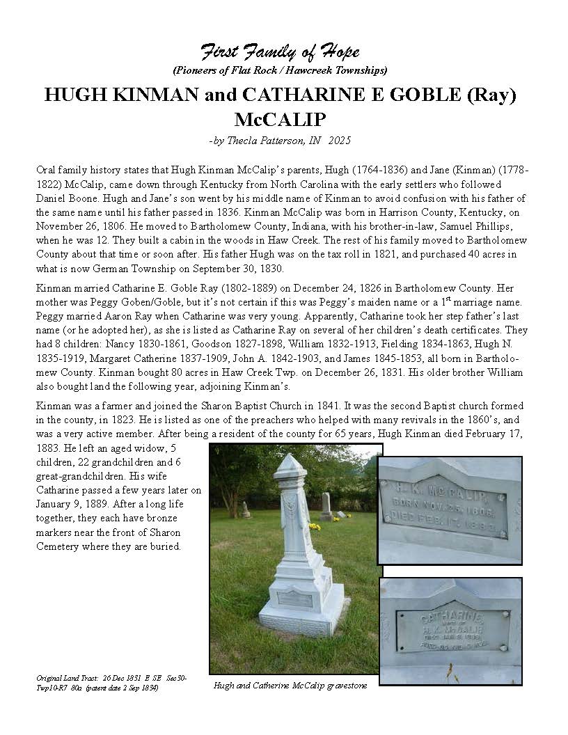 McCalip, Hugh Kinman and Catharine E Goble (Ray)