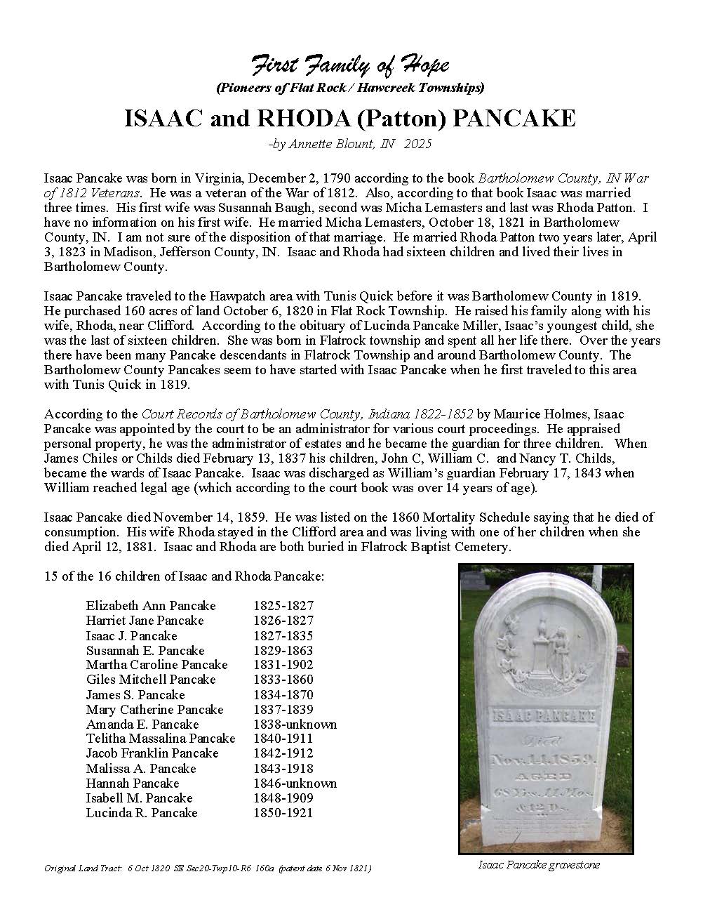 Pancake, Isaac and Rhoda (Patton)