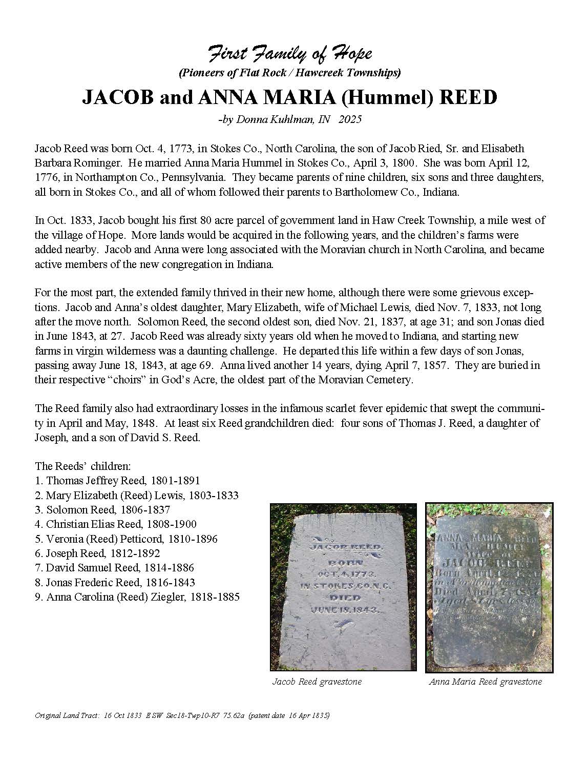 Reed, Jacob Jr and Anna Maria (Hummel)