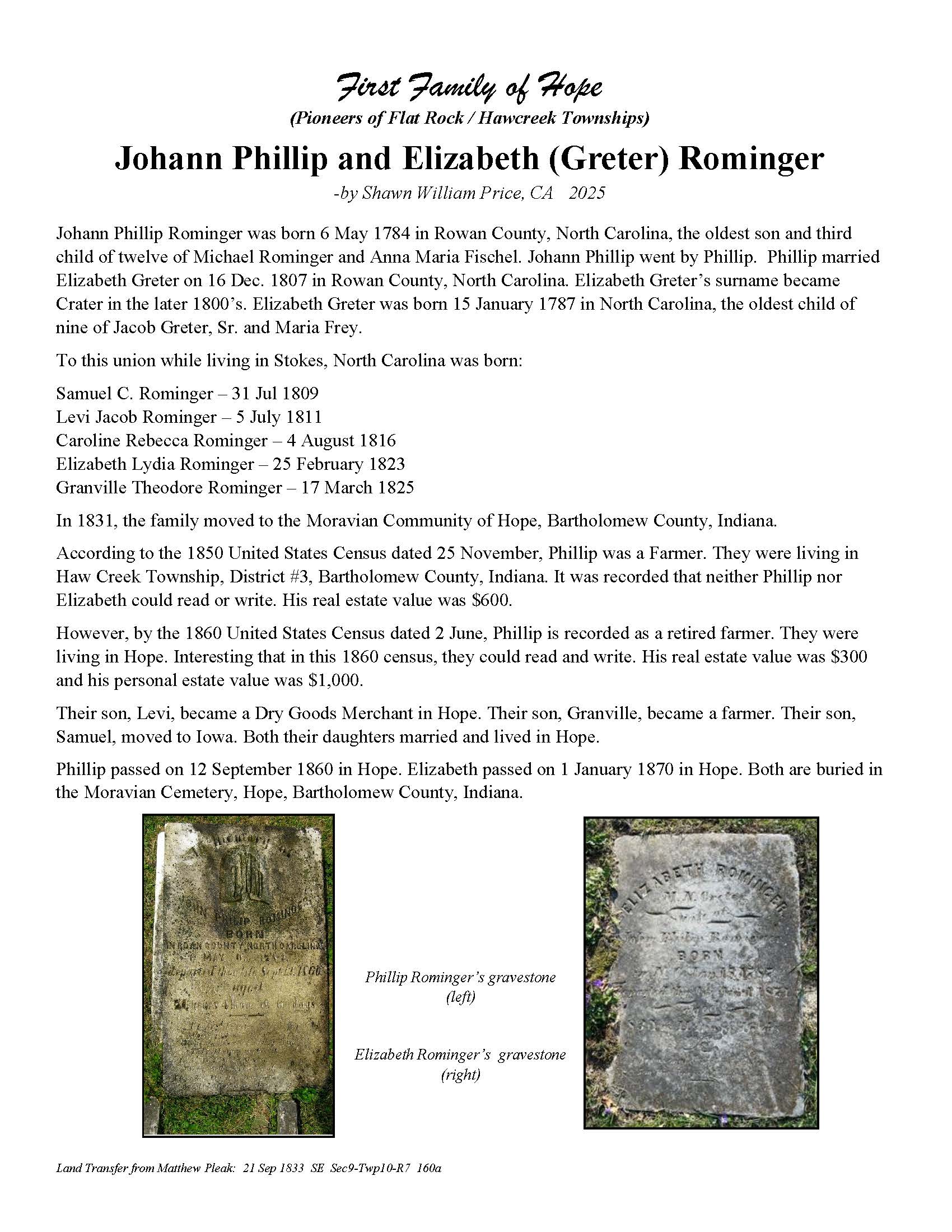 Rominger, Johann Phillip and Elizabeth (Greter)
