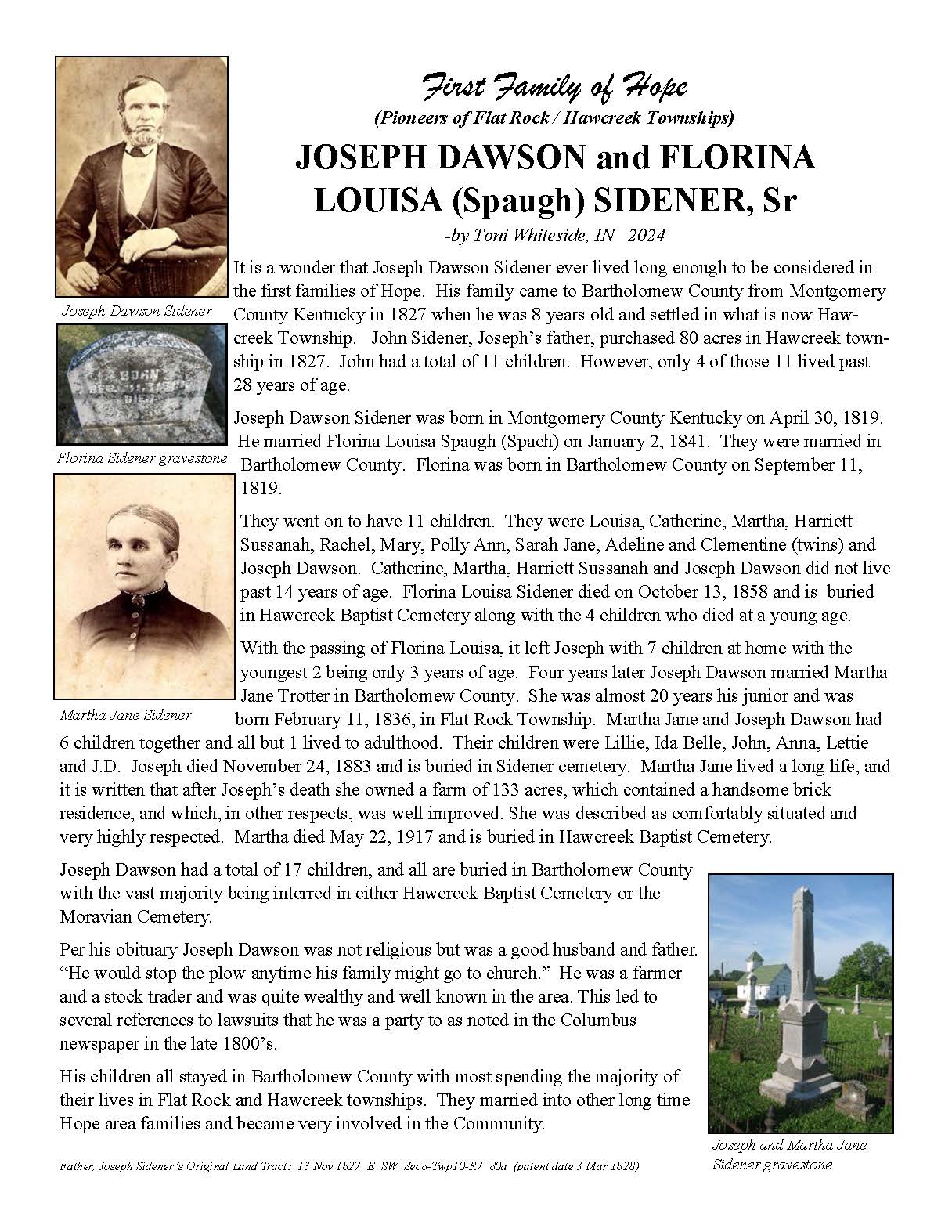 Sidener, Joseph Dawson and Florina Louisa (Spaugh)